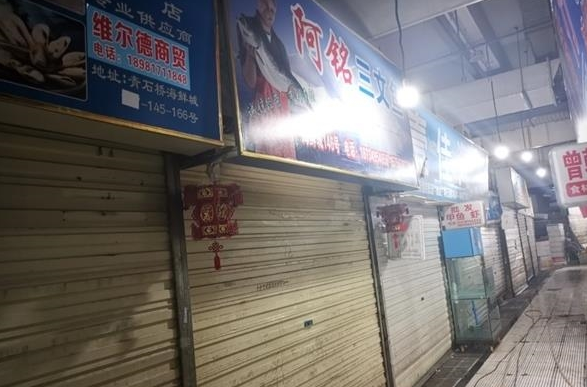 6月19日,位于成都青石桥海鲜市场内的多家三文鱼店铺仍然处于关闭状态。