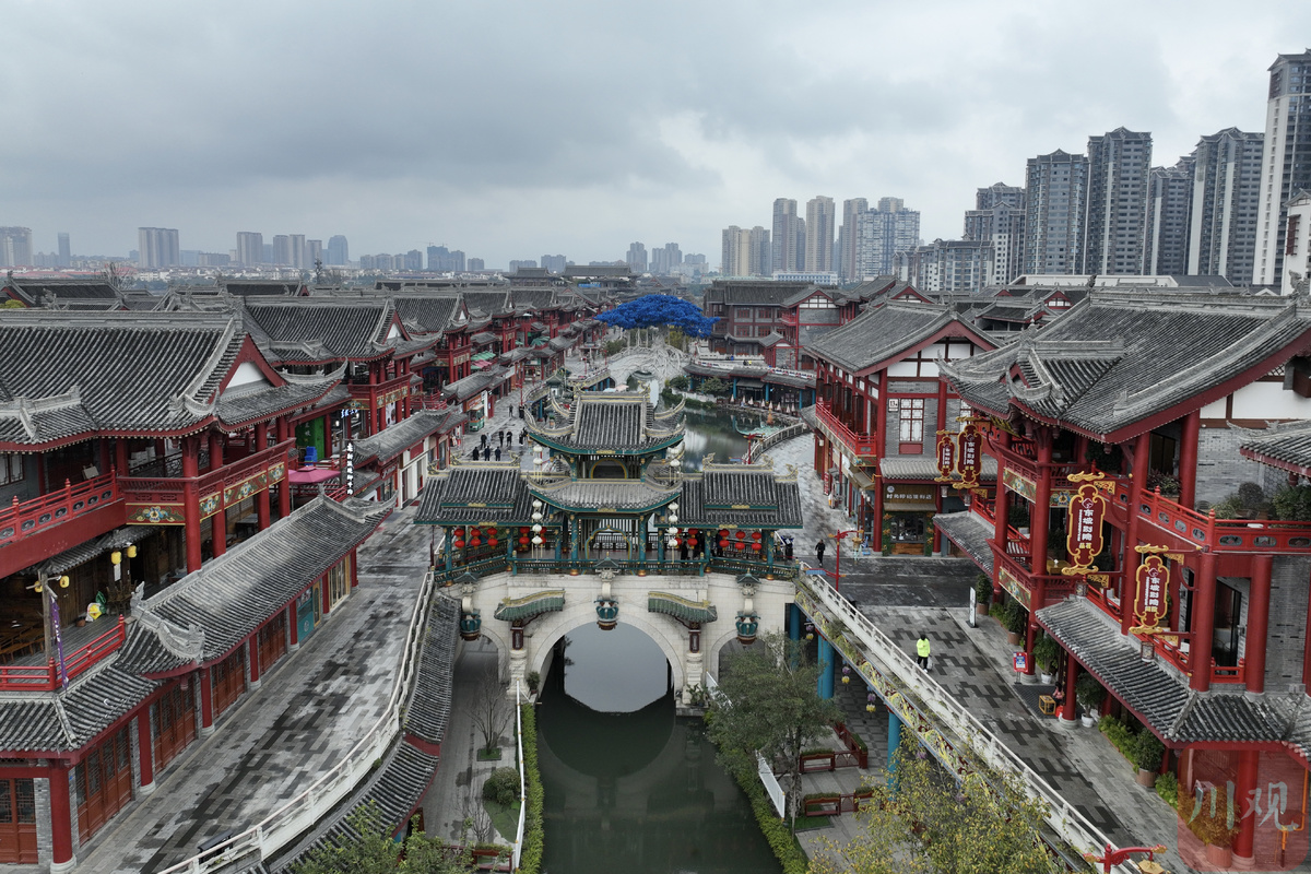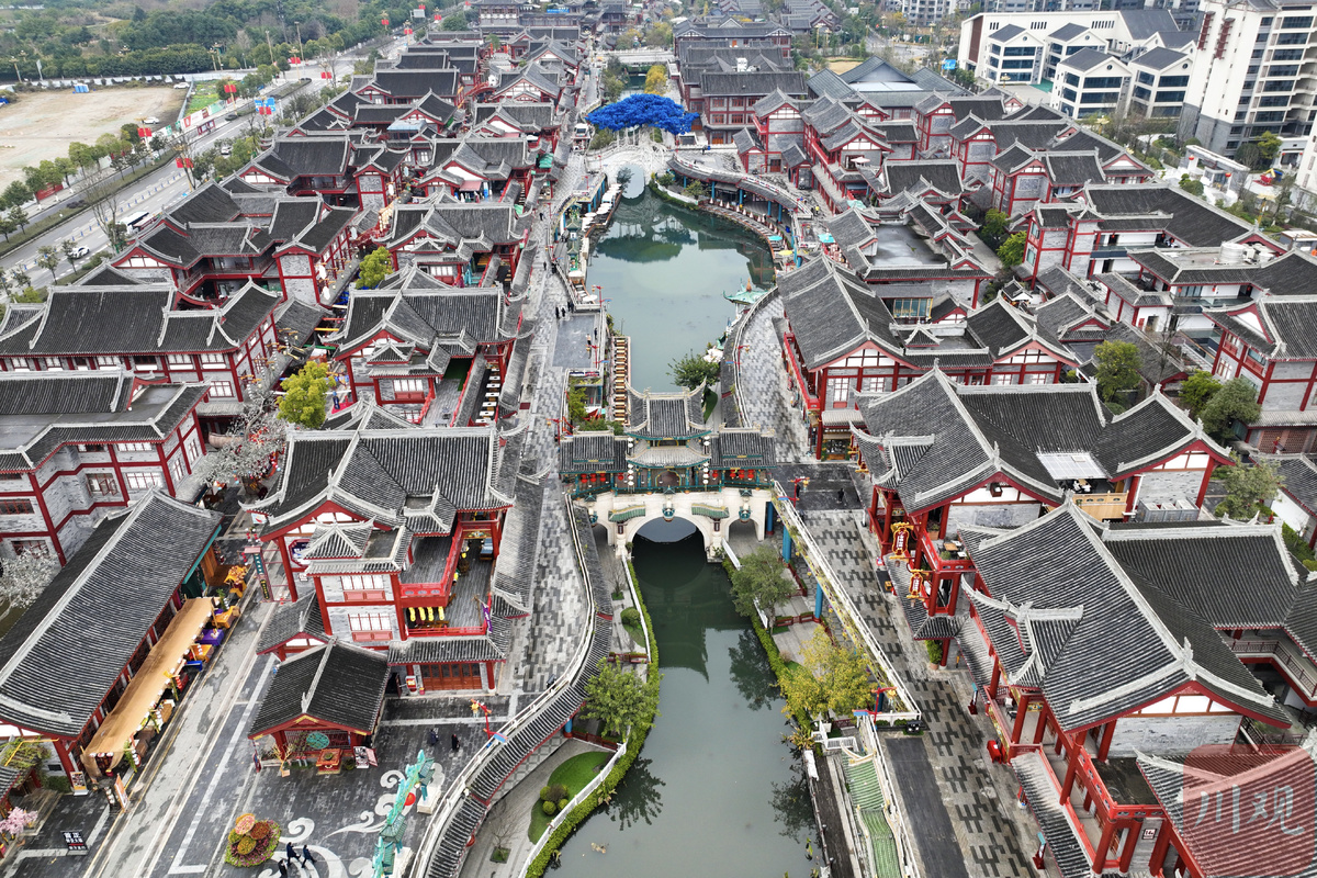 去年5月,眉山市东坡区“穿越盛世水街”凭借宋代风格的仿古建筑和充满沉浸式体验的夜间灯光场景营造,一开街便走红,成为四川乃至全国最火的文旅项目之一,被网友称为“大宋不夜城” 。2022年春节,水街再次迎来客流高峰,接待游客近30万人次,远超不少省内热门景点。“大宋不夜城”白天长什么样?2月7日,记者通过无人机航拍,带你看这一片壮观的仿古建筑群。