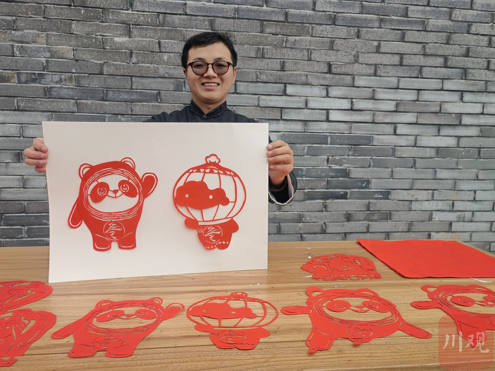 2月9日,在内江市东兴区东兴老街榫卯文创中心,东兴初中的教师李有生用剪刀剪出了外形憨态可掬的北京冬奥会吉祥物“冰墩墩”,以及北京冬季残奥会的吉祥物“雪容融”,以此方式为奥运健儿加油。