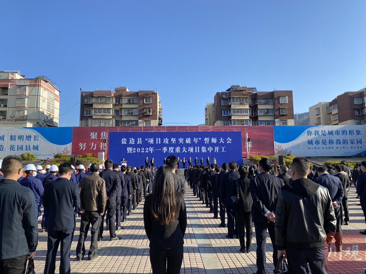 2月9日,攀枝花市盐边县举行“项目攻坚突破年”誓师大会暨2022年一季度重大项目集中开工仪式,全年拟实施69个重大项目,总投资962.2亿元;集中开工14个重点项目,总投资75.45亿元。