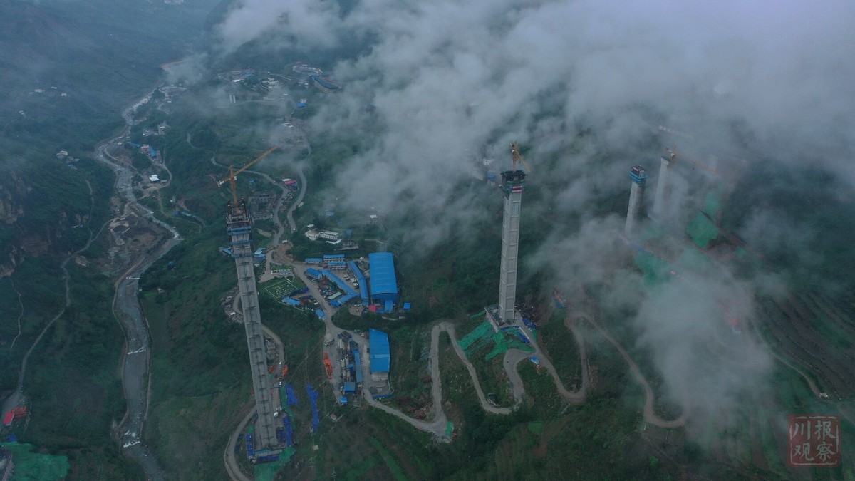 其中,金阳河特大桥的6号主墩高达196米,相当于65层高楼,比腊八斤大桥最高墩还要高13.5米。