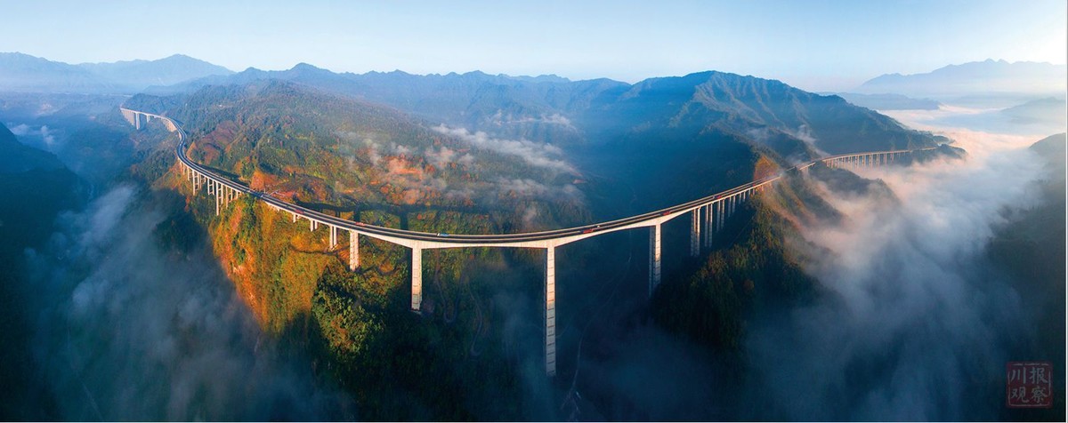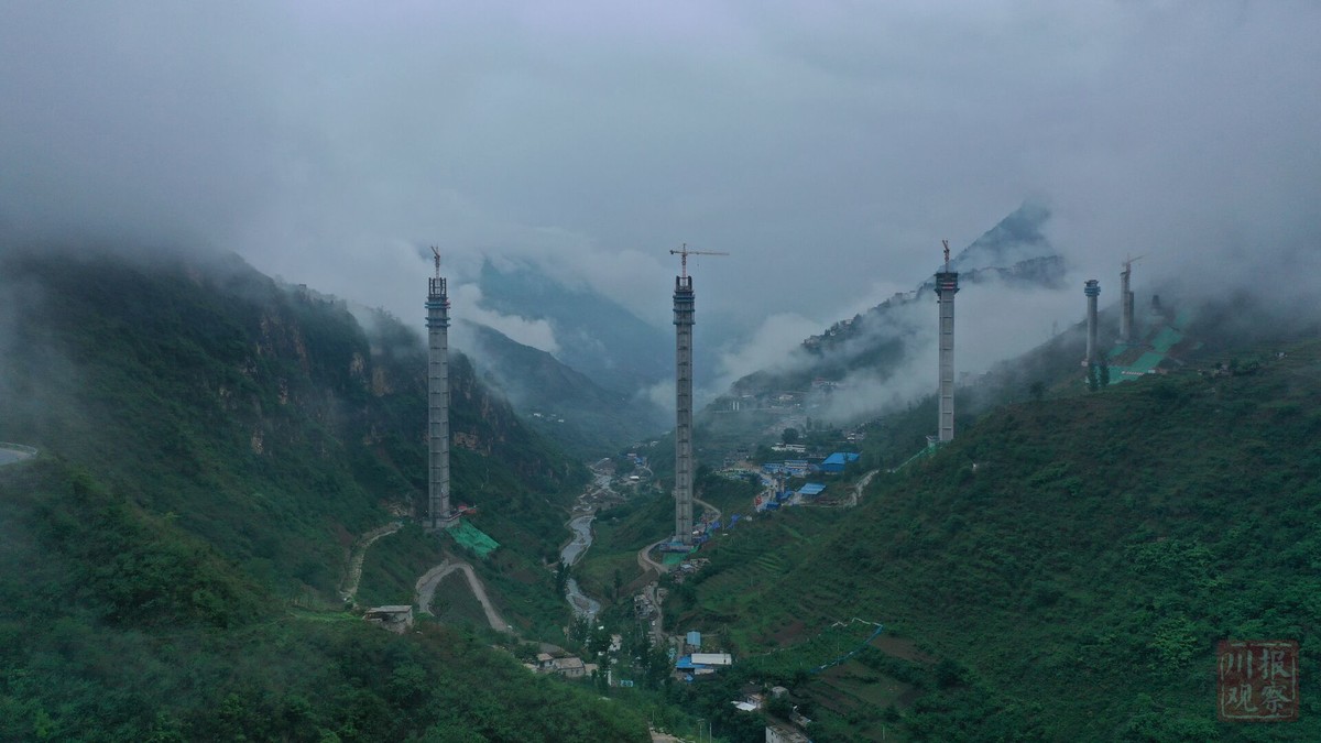 为了让大桥顺利跨越沟谷,3个高度超过100米的墩柱,采用了四川公路设计院自创的钢管混凝土组合格构墩——连续钢构世界第一高墩雅西高速腊八斤大桥的“同款”,减少自重的同时又增加了承载力度。