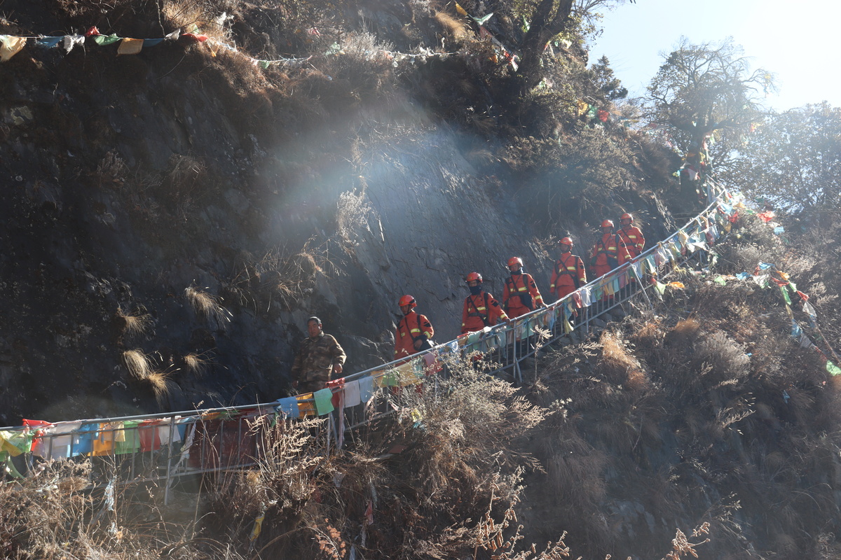 “春节期间,到寺里的人特别多,一般早上8点半到,我们必须赶在他们之前抵达。”江友发说,寺庙从山脚入口到山上有很长一段路,要走一两个小时。加上周边多香火、经幡,因此春节是一年中当地防火压力最大的时期,容不得半点懈怠。