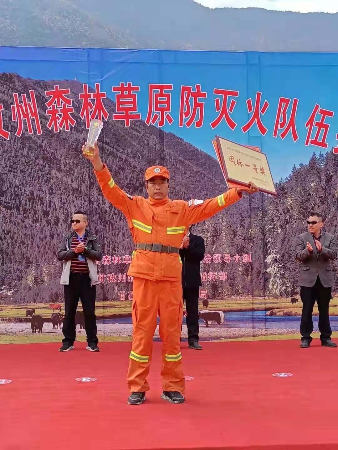 穿着橙色防火服的队员们,随身携带多功能水枪、风力灭火机等防灭火工具。