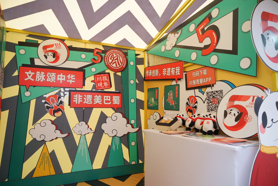 2019年,第七届中国成都国际非遗节期间,川报观察“巴蜀潮非遗”主题快闪店推出非遗节站,把古老的非遗玩出巴蜀“新潮流”,现场推出“非遗小课堂”,川剧脸谱、剪纸、年画等不同专场非遗教学活动。
