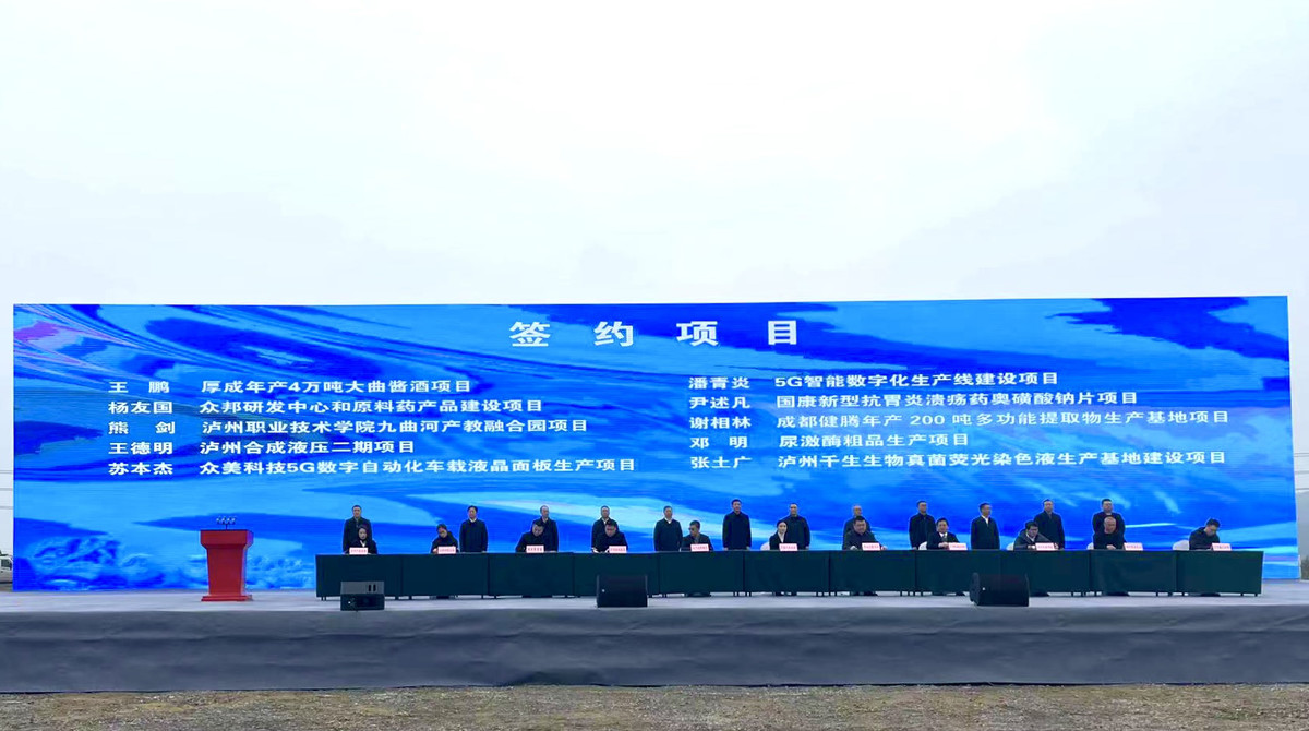 2月10日上午,泸县举行2022年第一季度重点项目集中签约开工仪式。“开工!”9点30分,12台戴着大红花的挖机同时鸣笛,扬起挖斗,闻声摆动。
