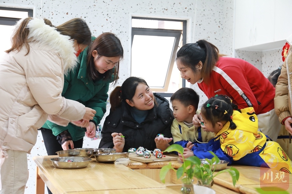 随着北京冬奥会比赛的火热进行,憨态可掬的冰墩墩也深受人们的喜爱,导致“一墩难求”。2月10日,在四川省泸州市龙马潭区的一所幼儿园内,老师们与孩子们共同自制着“冰墩墩”汤圆,在娱乐中尽享冬奥乐趣,为中国健儿加油鼓劲。