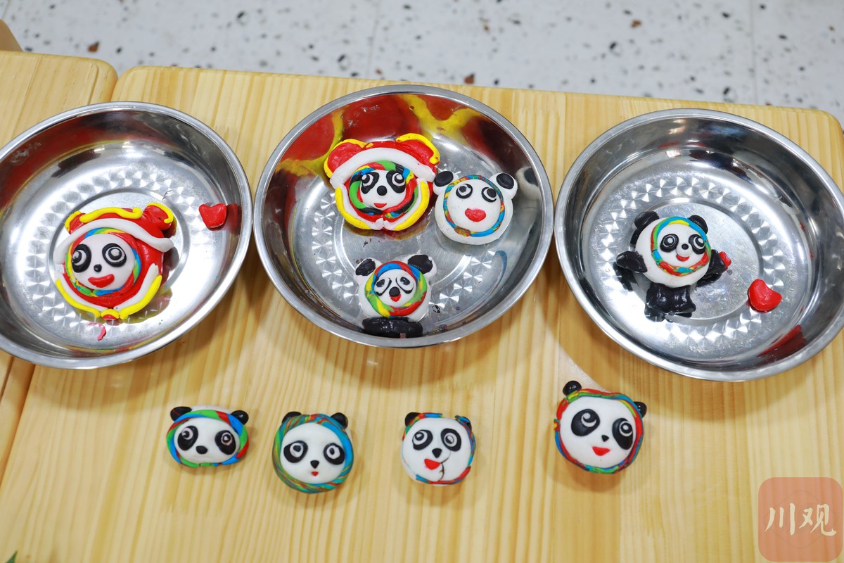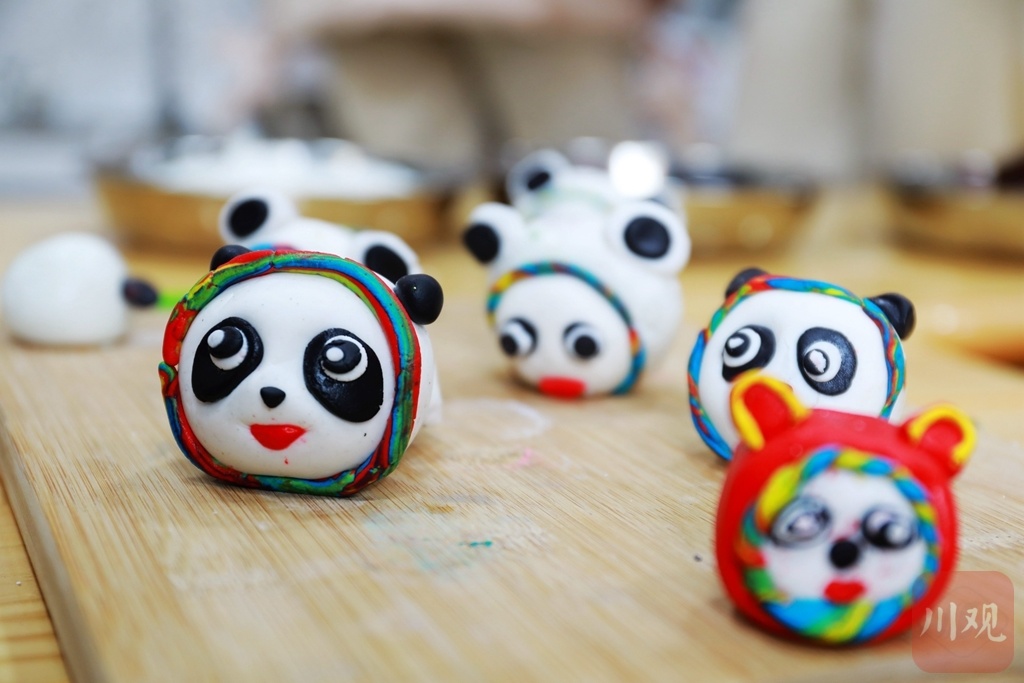 在“冰墩墩”汤圆的制作环节中,最难的是在汤圆上呈现“冰墩墩”的脸部、四肢等部分。“冰墩墩”的眼睛还需要叠加三层大小不一的面团,才会有水汪汪的效果,四肢部分也一定要用水粘牢,这样才不容易煮散。