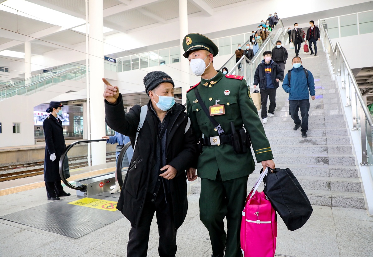 今年春运正式启动以来,该支队一批批经过严格培训的执勤官兵正式走上各执勤点,开始了为期40天的春运执勤任务。武警官兵上勤以来,每天协助车站公安民警出勤10余次,累计开展帮助过往旅客提供便民服务30次,用实际行动守卫旅客返乡路。