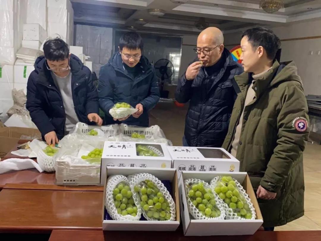 团队成员查看贮藏100天的阳光玫瑰品质状况
