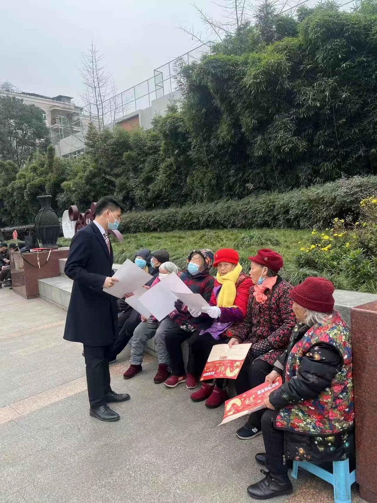 中国银成都高新支行营业部工作人员走进社区面向老年客户宣传金融知识。
