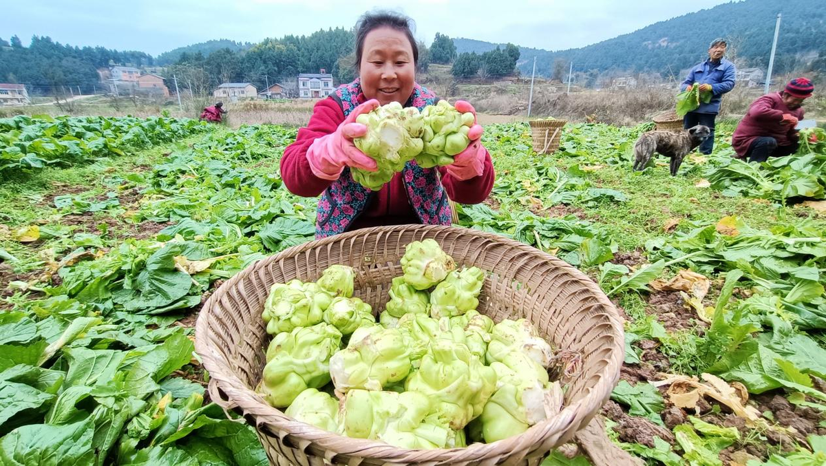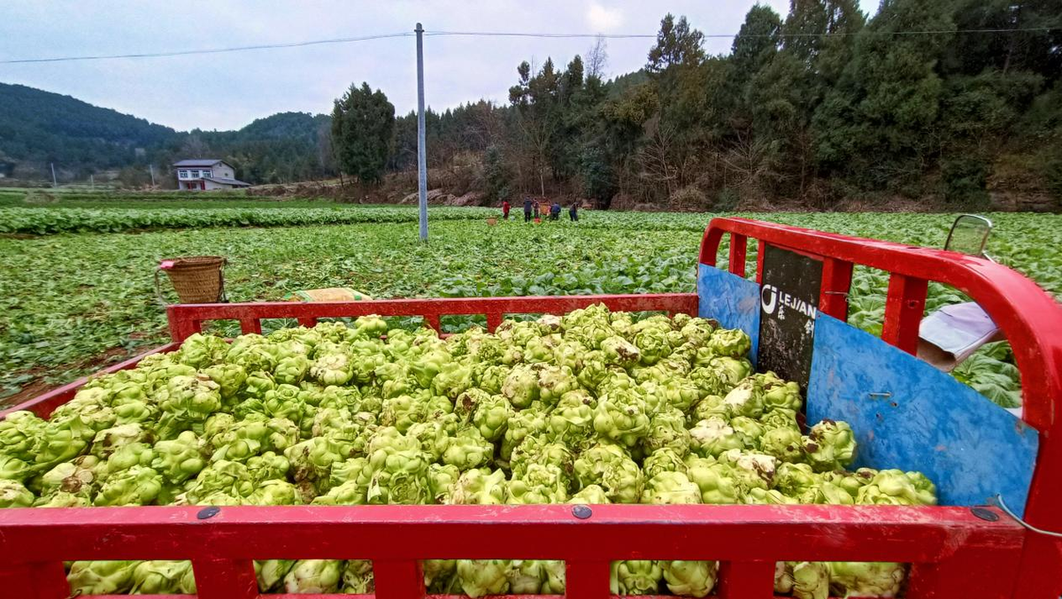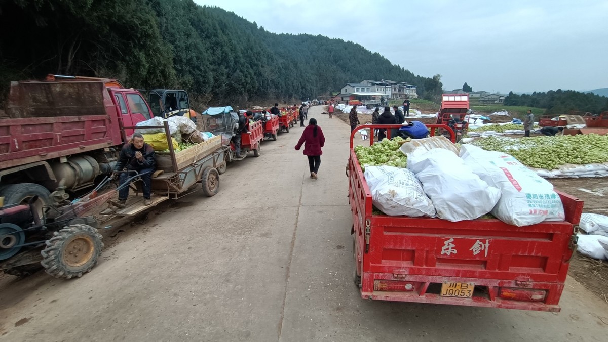 赵中说到的合作社便是三台县春元蔬菜种植专业合作社,全乡有168户农户入股。该合作社负责人龚春元介绍,为提高农户种植榨菜的积极性,合作社统一向农户发放榨菜良种、提供农资、开展技术指导,并负责统一收购,打消了农户种植榨菜的后顾之忧。“目前已经收了2000多吨榨菜,收购期将延续到元宵节,预计总共要收5000多吨。”