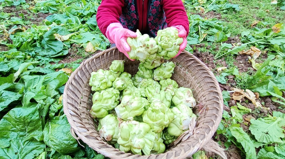 “蔬菜种植周期短、见效快,很好地提高了土地利用率,有效促进了农民增收。春节一过,老百姓早早就谋划起今年的收成,劲头十足。”忠孝乡党委书记周勇介绍,全乡多零散地块,非常适宜种植季节性蔬菜。目前常年种植高芥酸油菜2万余亩,优质南瓜6000余亩,不仅发展有榨菜,还发展了青菜、小米椒、豇豆等多种蔬菜产业。“今年全乡榨菜总产量预计能达到7000吨左右,等榨菜收割完后,将组织农户开足马力备春耕,确保下一季蔬菜种植丰产又丰收。”