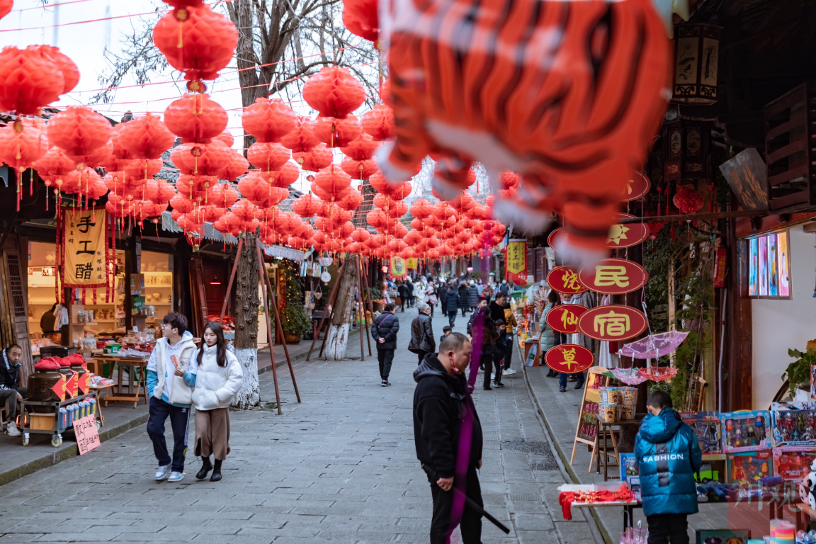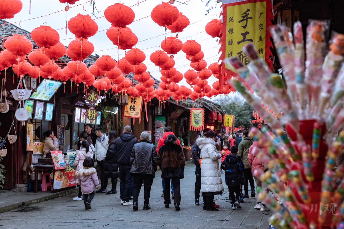 2月8日,农历正月初八,川观拍客来到阆中古城感受浓浓年味。古城里挂满红灯笼,虽然当天有点下小雨,却丝毫没有影响到大家逛古城的心情。