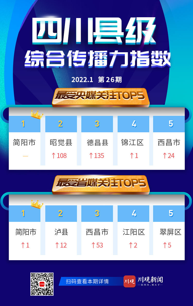 2月17日,四川县级综合传播力指数第26期(2022年1月)发布