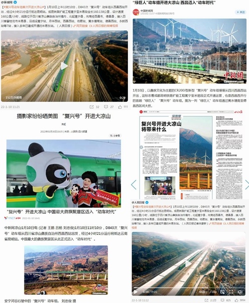 “复兴号动车首次开进大凉山”是1月的热点,相关话题登上微博热搜,西昌市和德昌县有站点,这也让两地关注度上升。《复兴号开进大凉山》《复兴号开进大凉山将带来什么》《摄影家纷纷晒美图 “复兴号”开进大凉山》《从“慢火车”到“复兴号” 快慢之间映射凉山50年交通变迁》等一系列新闻报道受到关注。《卫星看四川|卫星带你贴地飞行看凉山进入“动车时代”》《笑脸纯真!大凉山孩子用歌声庆祝动车首发》等新媒体策划也受到网友好评。