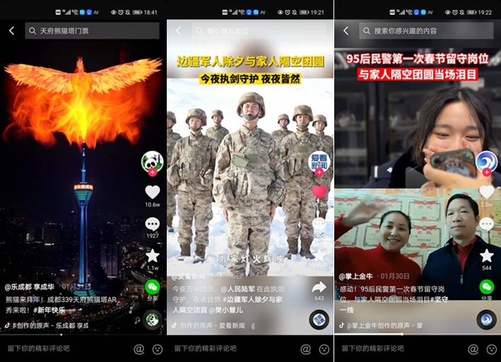 “江安融媒”本期总点赞数近21.7万,其中四川籍战士向家乡人民送祝福的短视频《来自4500米高原边防战士的新年祝福!》点赞数就有13万,网友们在评论区纷纷留言向战士们致敬。该号的另一条暖新闻短视频《大三学生回家隔离结束把房间打扫得干干净净!》也有优异表现。