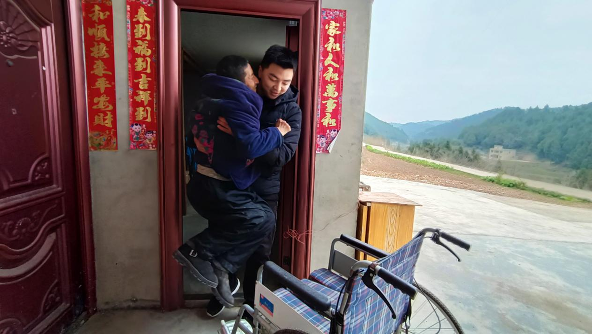 “幺爷爷,现在天还冷,衣服要多穿点,注意保暖,不要冻着了!”“明天我就要回成都上班了,在家要好生注意,有啥事随时给我打电话。”杜敏一句句叮嘱着,患有先天性小儿麻痹症和智力障碍的幺爷爷杜天全,听着孙儿的话笑呵呵地连连点头,用他们之间才懂得的交流方式回应。