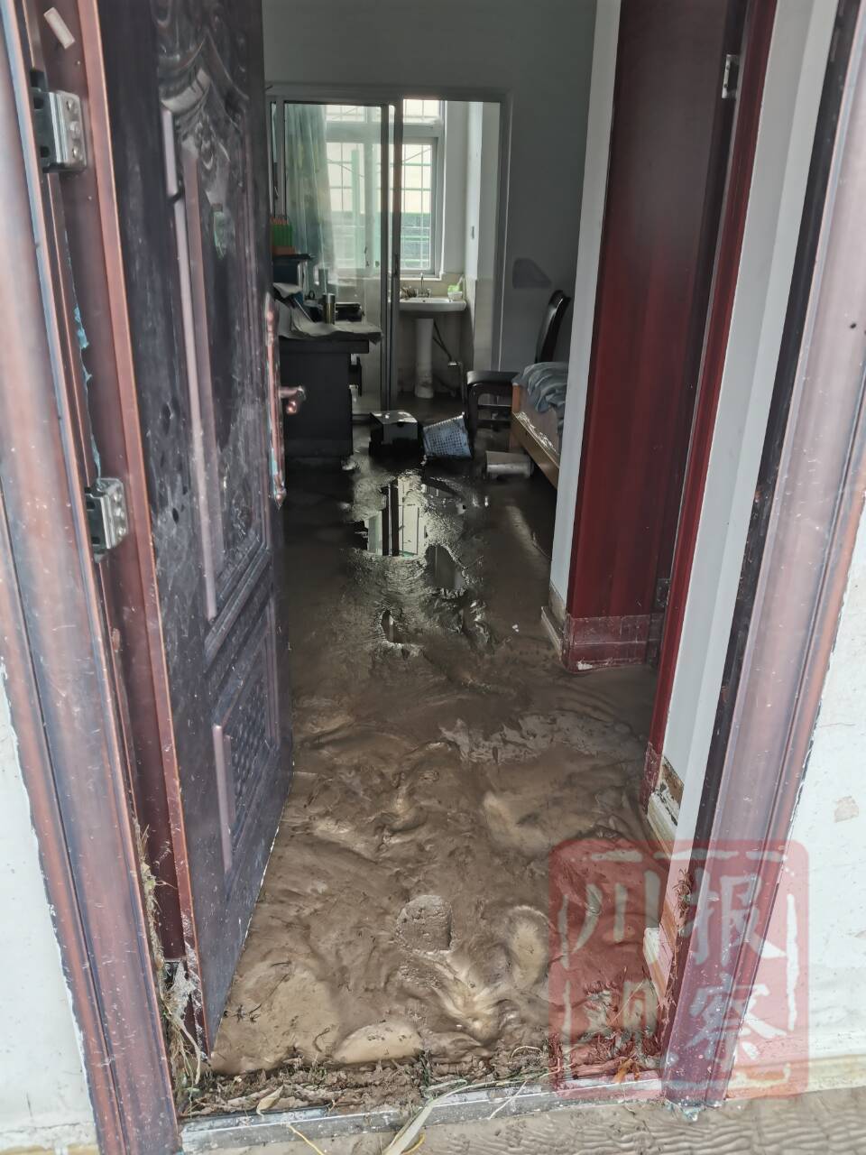 6月24日下午,端午节放假后,保安邱木布在学校值守。“前段时间一直在下小雨,然后是冰雹,前天晚上12点左右突然下大暴雨。”邱木布它回忆,当时他睡在一楼,眼看洪水冲进学校操场,涨到至少一尺多高,灌进宿舍,他马上爬到多功能楼三楼避灾。