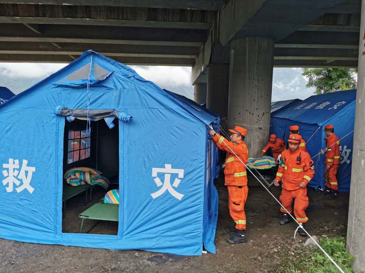 截至今天上午,消防指战员共搭设了救灾帐篷120余顶,安置了250余户村民。