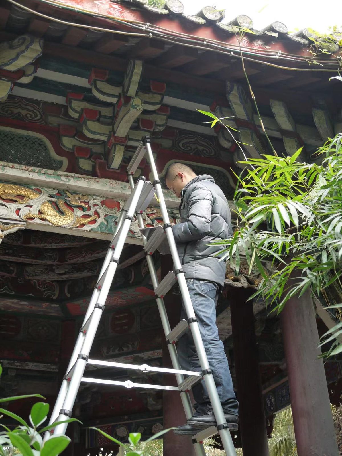 此次古建中心在田野调查中,使用了一件“秘密武器”红外相机。虽然红外相机早已问世,但将红外摄影技术用于古建调查,在川内还是首次。成都文物考古研究院古建中心副主任蔡宇琨介绍,此次古建调查使用的红外相机由普通数码相机改造而来,却在眉山的报恩寺大殿有了意外收获。