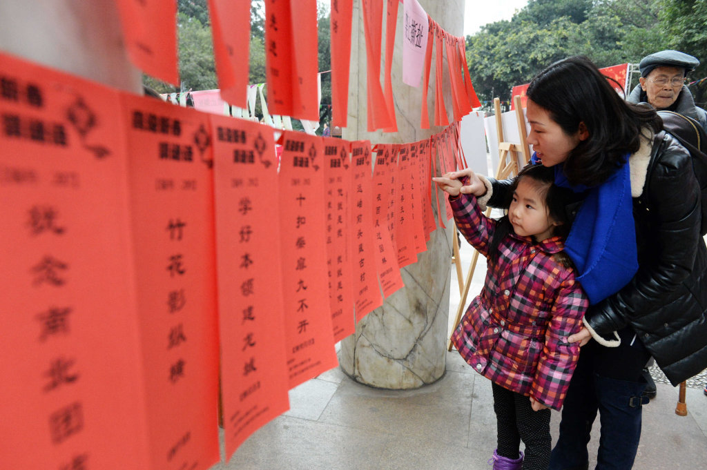 新年游园会送春联、猜谜语迎新春。李向雨 摄