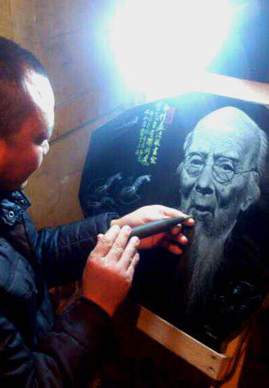 走进陈辉元的工作室里,这样的场景常常出现:影雕爱好者们右手握着钢錾刀,左手扶住刀头,以一定的频率规律地敲击靠着画架的黑色大理石,在不断敲击之下,一幅惟妙惟肖的人像在石板上显现出来,陈辉元一边观看学员们的习作,一边指导。陈辉元希望,这项从外面带回家乡的技艺能够更好地融入本土文化中,传承创新,形成市场,为文旅融合发展作出贡献。