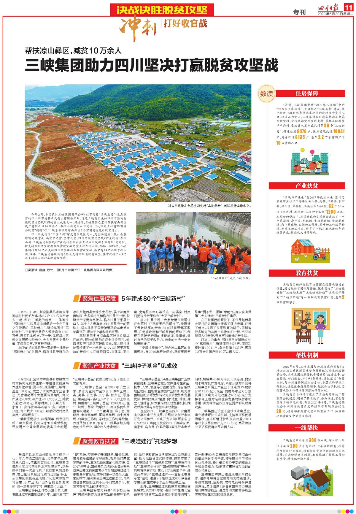 凉山州是我国“三区三州”深度贫困地区之一,是全面建成小康社会最难啃的硬骨头,属贫中之贫、坚中之坚。四川省脱贫攻坚战的“主战场”在凉山州,三峡集团切实践行“在履行企业社会责任方面发挥表率作用”的定位,把支持四川省坚决打赢脱贫攻坚战的重点放在凉山州。2016—2019年,三峡集团捐赠16亿元支持四川省坚决打赢脱贫攻坚战,其中有14亿元用于凉山州。今年,三峡集团再次新增5亿元支持四川省脱贫攻坚,其中安排了4.3亿元支持凉山州打赢脱贫攻坚战。