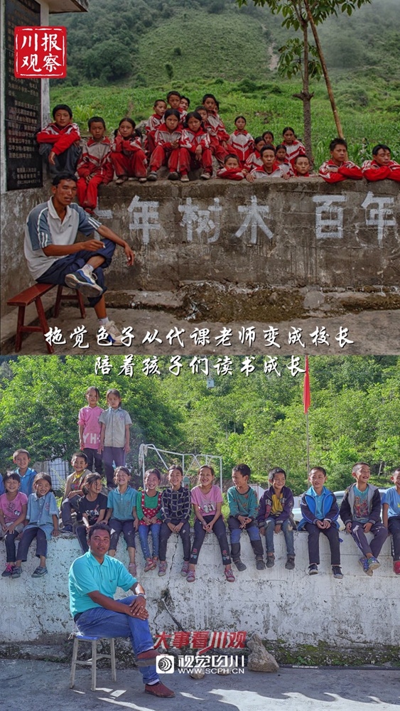 ▽拖觉色子从阿布洛哈小学代课老师变成了校长,陪着一批批孩子们读书成长。