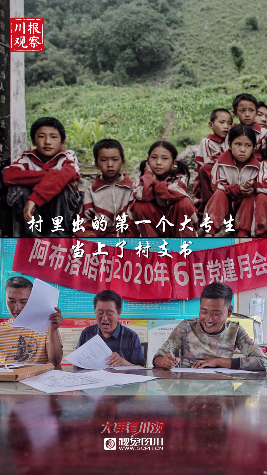 ▽吉列子日(上图左一)成为了村里的第一个大专生,如今是阿布洛哈村的第二任村支书,也是布拖县最年轻的村支书。