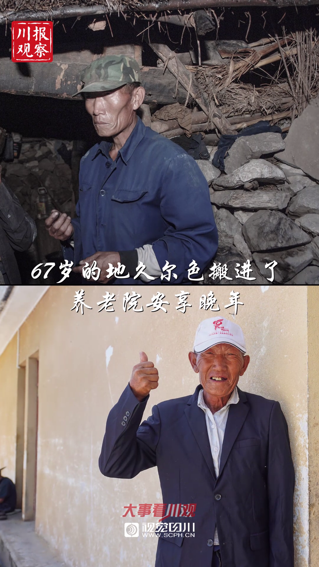 ▽今年67岁的地久尔色告别了石头堆砌的房子,搬进了养老院,生活得很惬意。