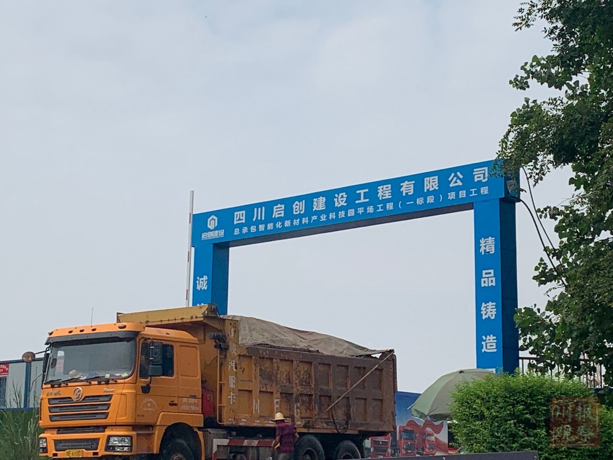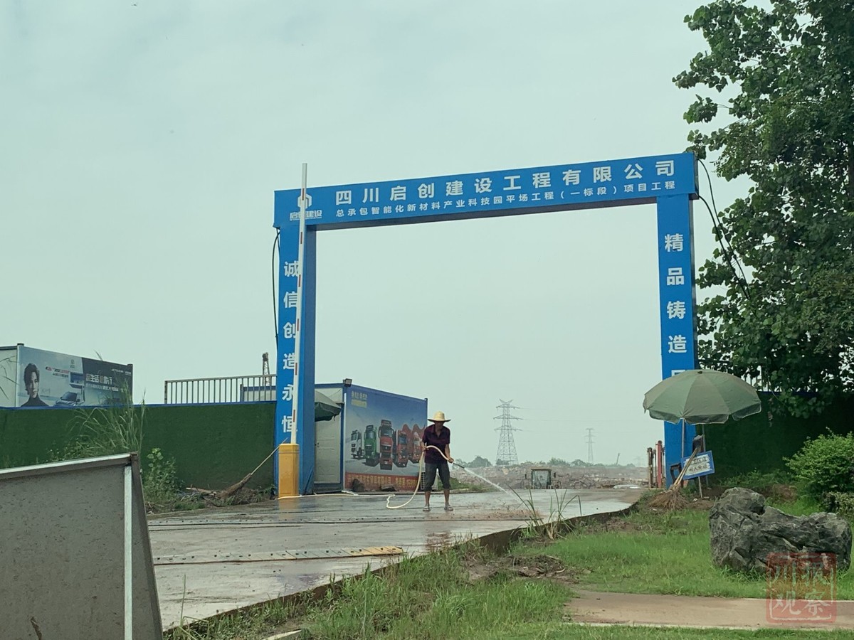 恒力(泸州)产业园纺丝项目的建设现场大门口,工作人员正在冲刷车辆留下的泥巴。魏冯摄
