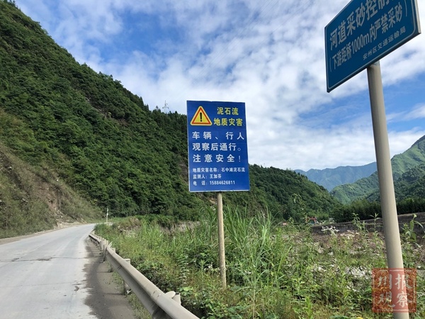 6月23日,记者前往安州区高川乡路上,沿途的地质灾害隐患点位都有显著的提示牌,并安排有专人监测。