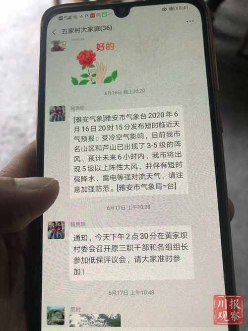 "汛情灾情上传下达,我们还有微信群,很方便。"许尚鹏告诉记者,从镇到村,都建立了微信群组,干部村民都在群里,上级的精神指示,各地的汛情灾情,都可以在群里上传下达。