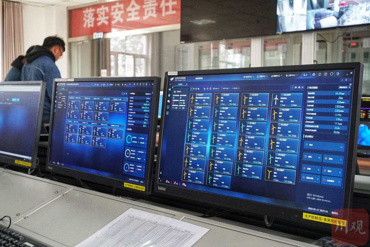 离平地镇约20分钟车程的大山深处,一座变电站将“风的馈赠”输送向远方的人们。在干坝子风电场升压站的监控室里,场长赵波正核对前一天的发电数据,“4月到11月赶上风季,最多一天能发300多万度。”
