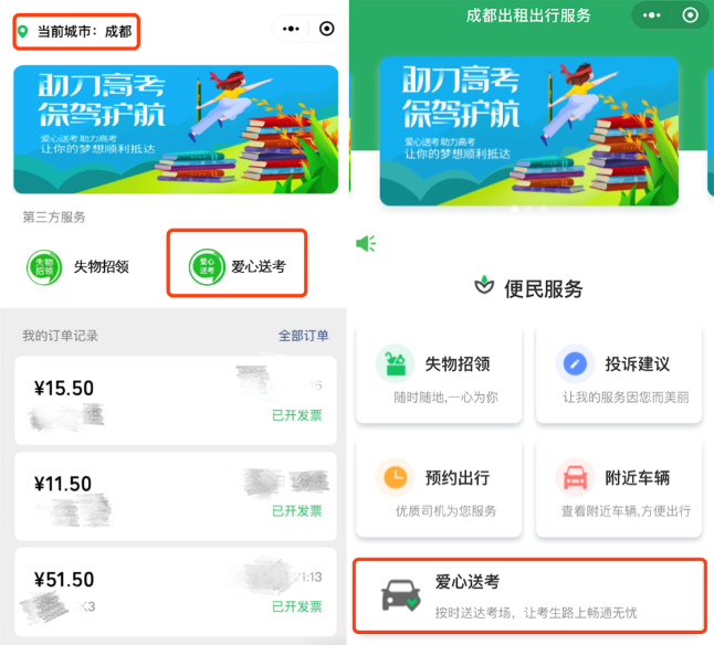一年一度的高考即将来临,为帮助考生安全、快捷、准时抵达考场,7月1日,成都出租车智慧出行平台携手成都出租车协会和各大出租车公司推出“智慧出行,爱心送考”公益活动,为成都高考考生提供免费微信约车、行程监控、路线推荐、客服协助等智慧出行服务。