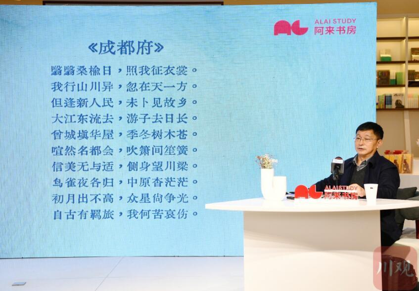 今天本来是讲一首诗,顺便带出另两首。一会儿扯到诗,一会儿扯到城市,就这样往返其间吧。诗歌跟历史之间,跟成都的建城史之间,跟成都的大自然之间,相顾往复,也是接下来讲杜甫成都诗的方法。两周后,还是这里,阿来书房,我们再来第二讲。