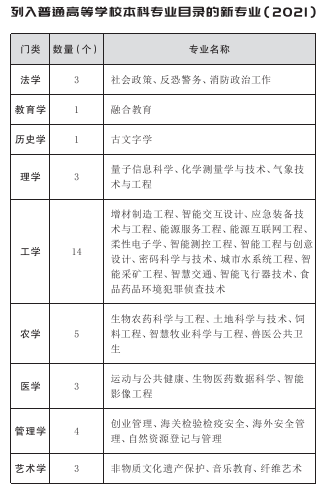 2021年,教育部公布了《2020年度普通高等学校本科专业备案和审批结果》和《列入普通高等学校本科专业目录的新专业名单(2021年)》,这意味着又会有一批“新”专业与学子“相逢”。