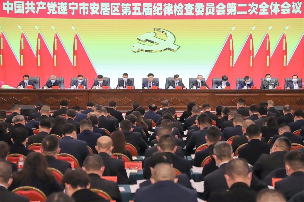 2月16日,中国共产党遂宁市安居区第五届纪律检查委员会第二次全体会议召开。区委书记吴军出席会议并讲话,强调要坚持以习近平新时代中国特色社会主义思想为指导,认真学习贯彻十九届中央纪委六次全会和省纪委十一届六次全会、市纪委八届二次全会精神,激情勇担当、整装再出发,推动全面从严治党向纵深发展,全面巩固和发展好安居心齐气顺的干事氛围和风清气正的政治生态,以优异成绩迎接党的二十大和省第十二次党代会胜利召开。区委副书记、区长杨文彬,区人大常委会主任黄元章,区政协主席田斌出席会议。