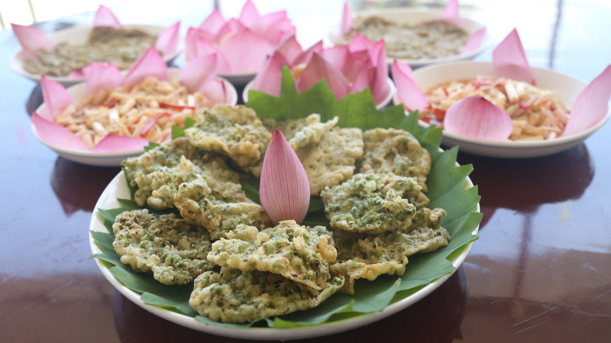 “我们推出了独具特色的荷花全席,有炸荷花、荷花蛋、荷花巴、冰冻莲子、炒藕带、泡藕带等,一桌子菜都与荷莲相关,吸引了很多游客慕名前来。”杨岭村党总支书记邓利军介绍。