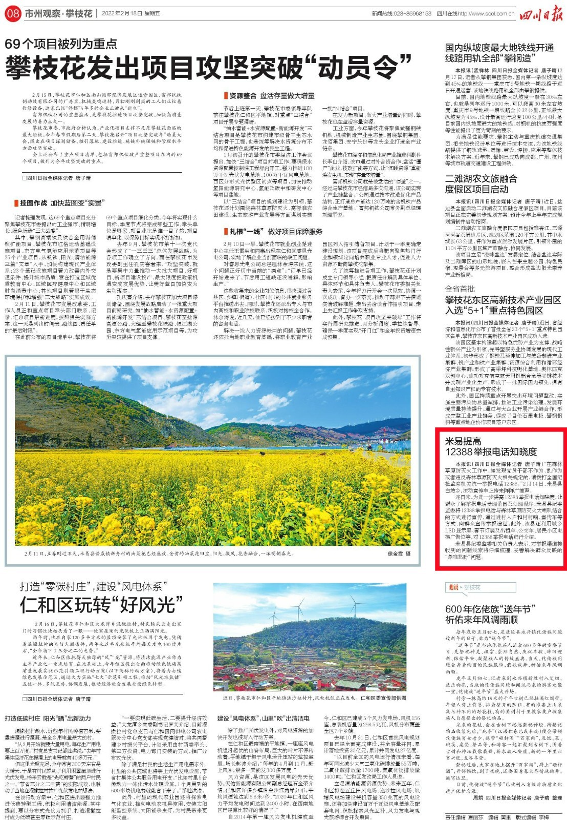 “在森林草原防灭火工作中,如发现党员干部不作为、乱作为或者违反森林草原防灭火相关规定的,请拨打全国纪检监察机关统一举报电话12388。”2月14日,米易县白坡乡,流动宣传车上传来阵阵广播声。