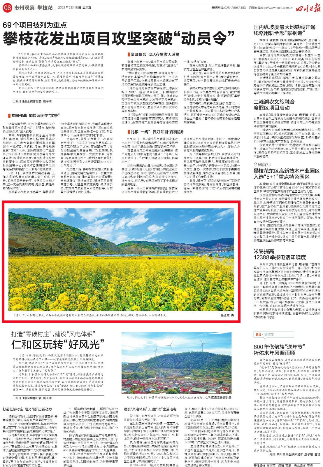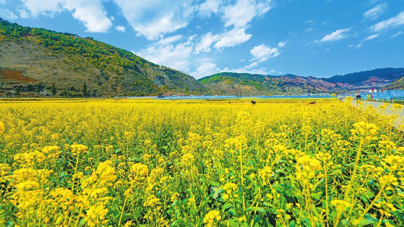 2月11日,立春刚过不久,米易县普威镇新舟村的油菜花已经盛放。金黄的油菜花田里,阳光、微风、花香融合,一派明媚春光。 徐金霞 摄
