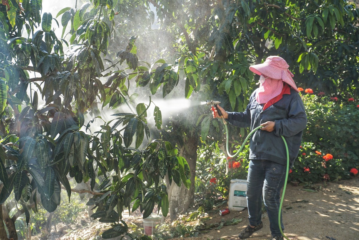 春季是芒果病害的高发时节,殷成美丝毫不敢马虎。与往年春耕不同,村里的芒果种植户有了新选择——购买由村集体经济统一采购的农资。