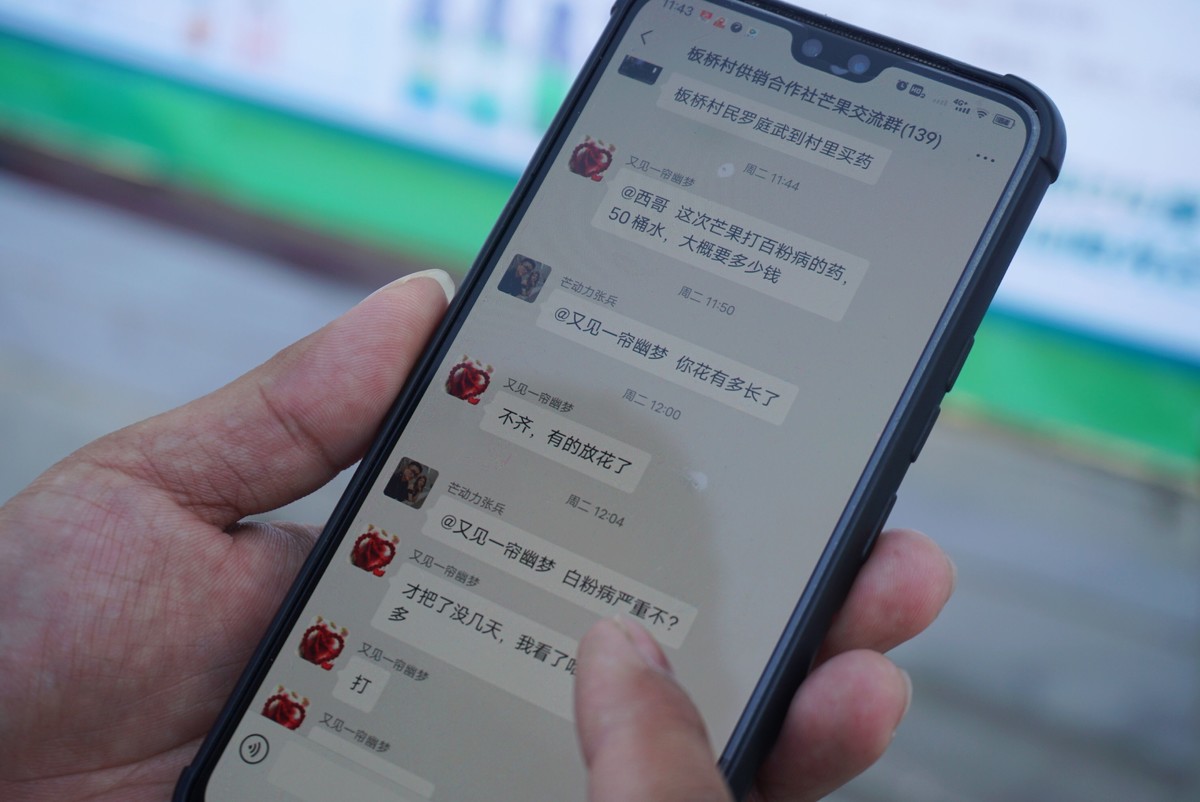 一大早,殷成美的手机微信就响个不停。点开一看,村民在新建的板桥村供销合作社芒果交流群说得正热闹。