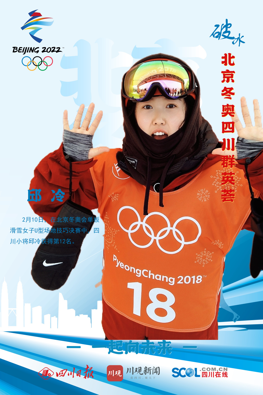 2月10日,在张家口赛区进行的北京冬奥会单板滑雪女子U型场地技巧决赛中,邱冷是北京奥运会第一个晋级决赛的四川运动员。
