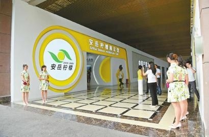 安岳县柠檬小镇安岳柠檬展示馆,工作人员在接待游客。记者郝飞摄