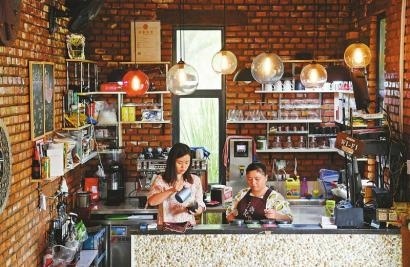 杨雯子(左)在德阳旌阳区高槐村的咖啡馆能容纳200人左右,生意火爆的时候一座难求。记者肖雨杨摄(资料图片)