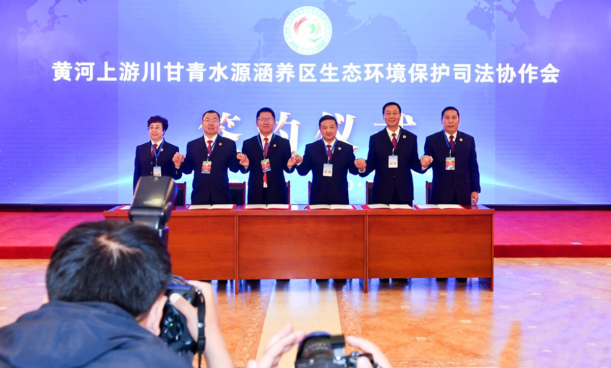 7月6月,在若尔盖县召开的黄河上游川甘青水源涵养区生态环境保护司法协作会上,四川省阿坝州、甘肃省甘南州、青海省果洛州的法院、检察院共同签署《黄河上游川甘青环境资源保护司法协作框架协议》,探索构建内部联动、外部协作、跨省跨区域的黄河上游生态保护协作机制,共同推动黄河上游生态环境资源保护和高质量发展。