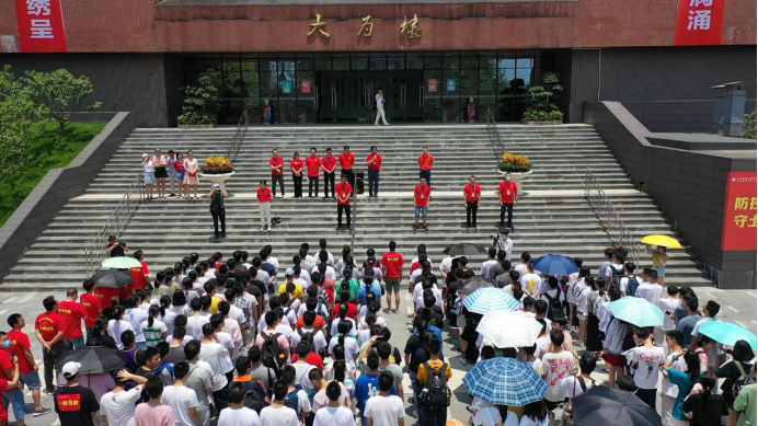 7月6日下午,2020年高考的前一天,电子科技大学实验中学为即将出征的高三学子,举行了一场简短而隆重的送考仪式。校长张平福带领学校行政班子和高三教师队伍,为198名2017级的学子送上了美好的祝愿,希望孩子们能够沉着自信应对这场不同寻常的高考,祝福大家旗开得胜、超常发挥。