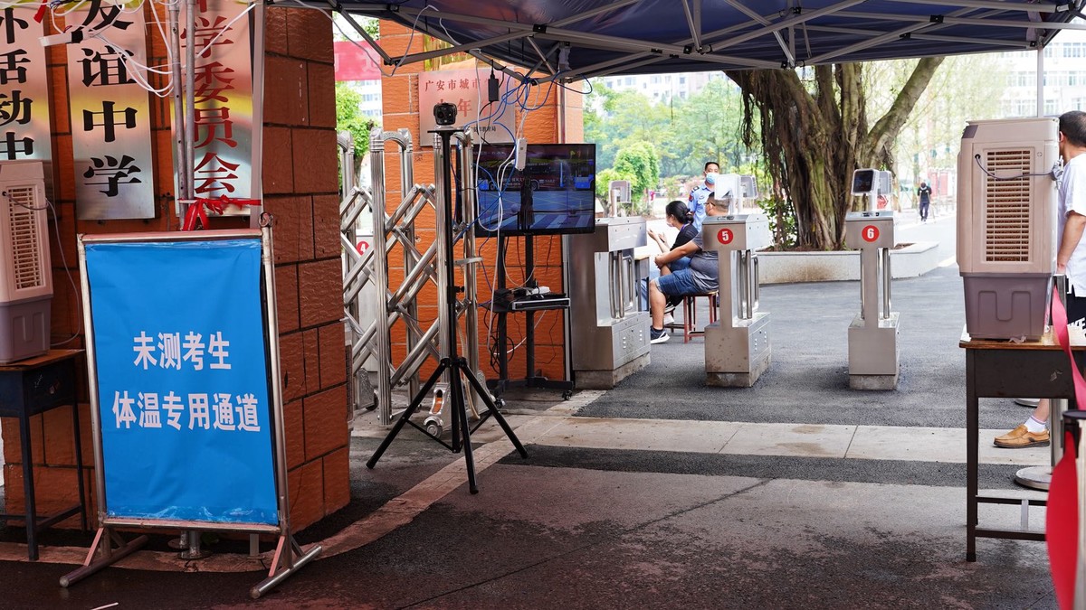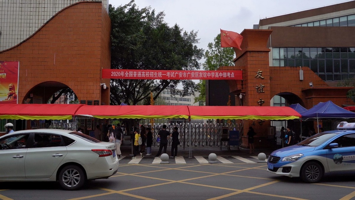 5辆公交车载着考生到考点提前熟悉考场,现场考生戴着口罩于校门口进行体温检测,在工作人员的指挥下有序进入校园……这是7月6日下午2点,记者在广安市友谊中学高中部采访时看到的场景。